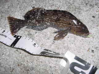 初めてアタリがでたのは、釣り開始から1時間30分ほど経ってから。しかもそのアタリも歯型ぐあいから本命らしくなかった。